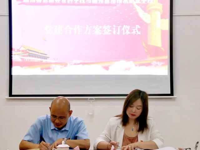 首先,赣州应用技术职业学校党支部书记徐敏和赣州师范高等专科学校党委委员、组织部部长蓝晓植分别介绍了学校党建工作情况。然后,蓝晓植部长、徐敏书记分别代表两校签订了结对共建工作方案。