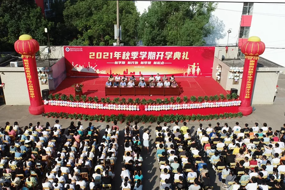 金秋校园喜迎学子,丰收季节播洒希望。2021年9月16日上午,赣州应用高级技工学校赣州应用技术职业学校2021年秋季学期开学典礼在学校北篮球场隆重举行。典礼由陈添生执行校长主持,陈林校长、徐敏书记等校级领导、各部门负责人以及21级2600余名师生参加开学典礼。