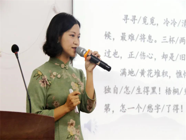 邱老师的示范课——《声声慢》,由浅入深,由简到难,层层深入,将李清照在写作中的愁情解析得淋漓尽致,带学生徜徉在中国古典诗词的海洋中,在场师生意犹未尽,受益匪浅。