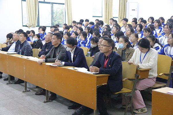 为深入推进党的二十大精神进课堂活动,2022年11月15日下午,赣州应用技术职业学校党支部书记徐敏在尚技楼多功能报告厅带头上了一堂生动的思政大课,全体党员、发展对象、入党积极分子、思政课教师及150余名学生参加了听课活动。