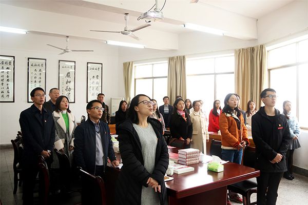 第二个议程,在赣州应用技术职业学校综合楼四楼会议室参加活动的两校党员集体诵读了《党章》第七章 党的纪律第三十九条至第四十四条,并为12月份入党的同志过政治生日。