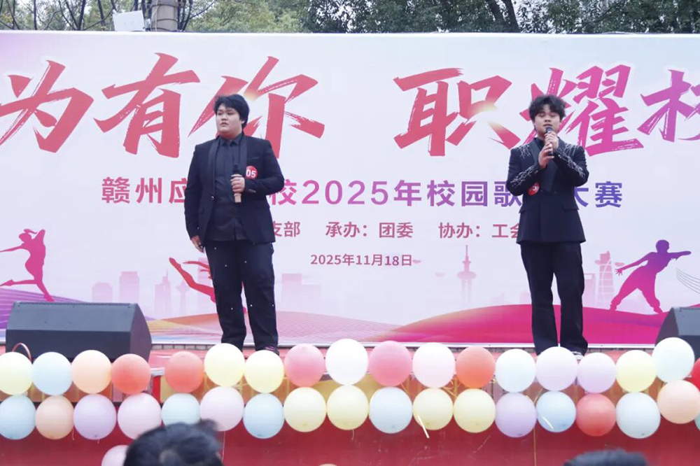 青春的旋律撞碎轻尘,梦想的歌声响彻校园。11月18日,赣州应用技术职业学校 赣州应用高级技工学校“音为有你 职耀校园”2025年校园歌手大赛总决赛在学校北篮球场隆重举行。活动由学校党支部主办、团委承办、工会协办,校级领导和师生共同参与。本届大赛首次鼓励师生同台竞技,不仅为学子们提供了绽放风采的舞台,更让老师们一展讲台之外的动人歌喉,共同谱写了一曲和谐动人的校园乐章。