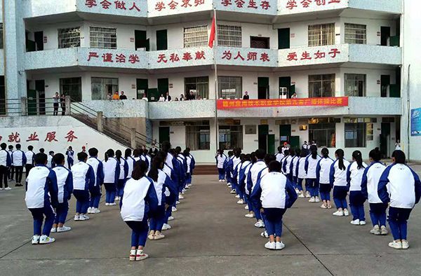 个班级参加,是一次广播体操表演的大练兵,也是青春活力的一次大检阅,更是同学们团结、拼搏、向上的集体主义精神的一次大展示。整个比赛有序进行,同学们统一的服装、规范的动作,展现了当代中职学生的青春个性和精神风貌。