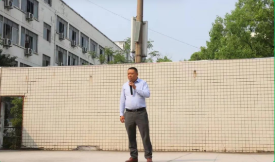 2021年3月15日,机电工程系主任缪定安组织机电工程系全体师生,在学校北篮球场召开两操整治动员大会。