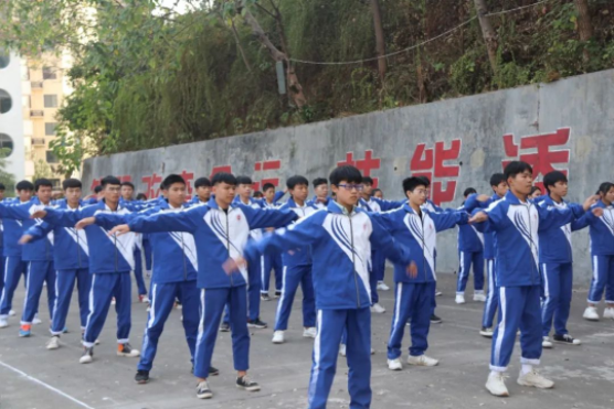 随后,在缪定安主任的带动下,全体学生认真做起了广播体操。在和煦的微风中,同学们动作整齐划一,呈现一派新气象。同学们纷纷表示,愿意改掉之前养成的坏毛病,积极投入到之后的两操活动中。