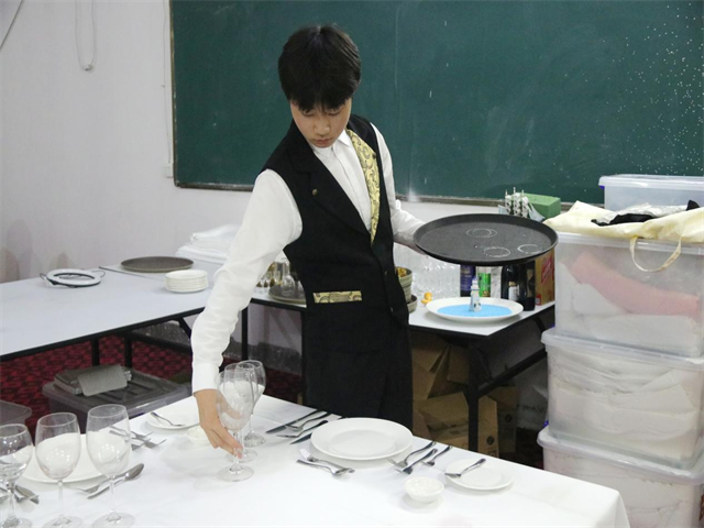 展出现场,经贸系会计专业的点钞、计算器盲打,航空票务专业的礼仪展示、中西餐摆台和铺床展示等技能娴熟;电商运营和电子商务专业的美工运营作品集、机电系模具专业和数控专业的零部件作品琳琅满目,充分展示了同学们的专业成长。