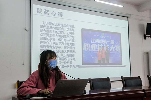 江西省第一届职业技能大赛精细木工项目钟林林、水处理技术项目陈荣相、电子商务师项目姚勤欣3位金牌选手走进校园,用他们朴实的语言、切身的体验,生动地再现了多年来的奋斗历程以及参赛的心得体会,充分展示了当代青年顽强拼搏的意志品格、精益求精的工匠精神。