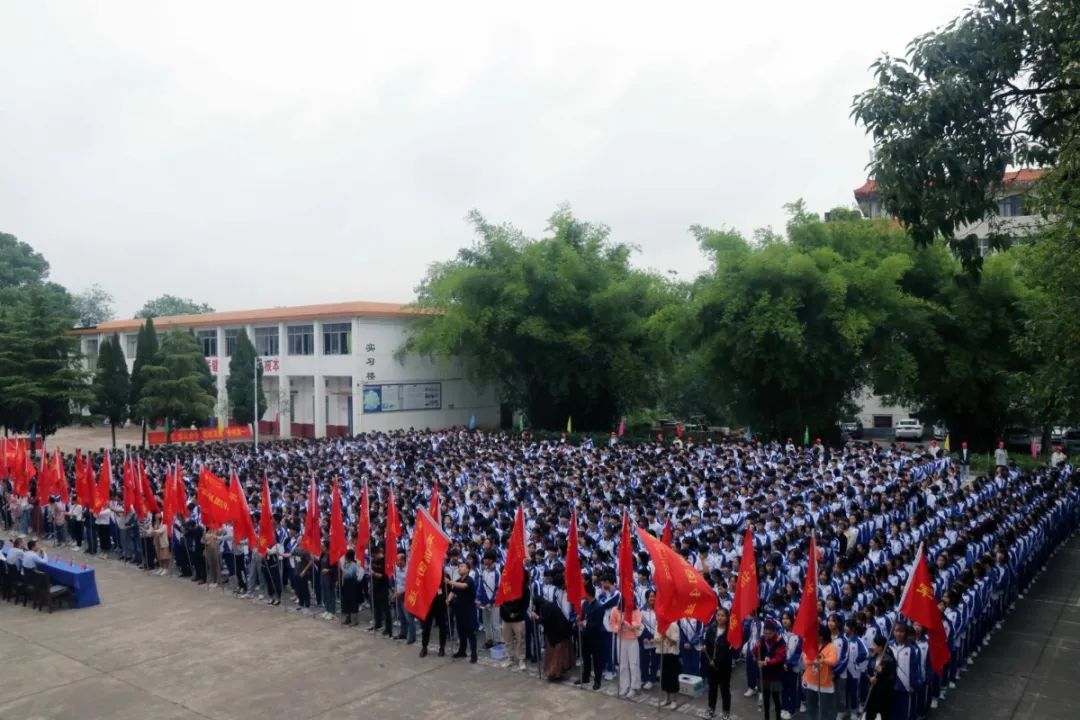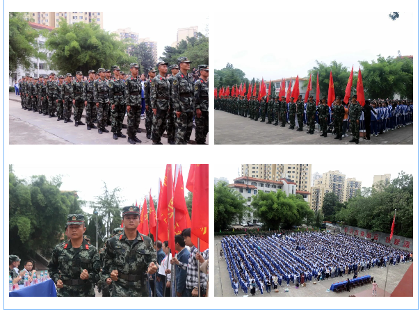 训队伍精神抖擞,队列整齐,早早来到广场等候大会的开始。动员大会在庄严的国歌声中拉开了序幕。首先是陈林校长作军训动员讲话。陈校长不仅要求同学们一要敢于吃苦,二要严守纪律,三要虚心学习,四要牢记安全;还希望同学们要认真对待军训,养成不怕困难、敢于拼搏的精神。接着是班主任代表曾静怡老师及学生代表刘瑶同学作表态性发言。她们表示在未来的七天时间里,将会全力配合教官,刻苦训练,争创佳绩。