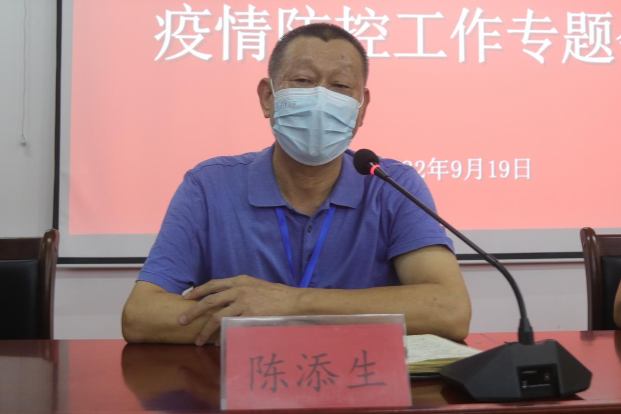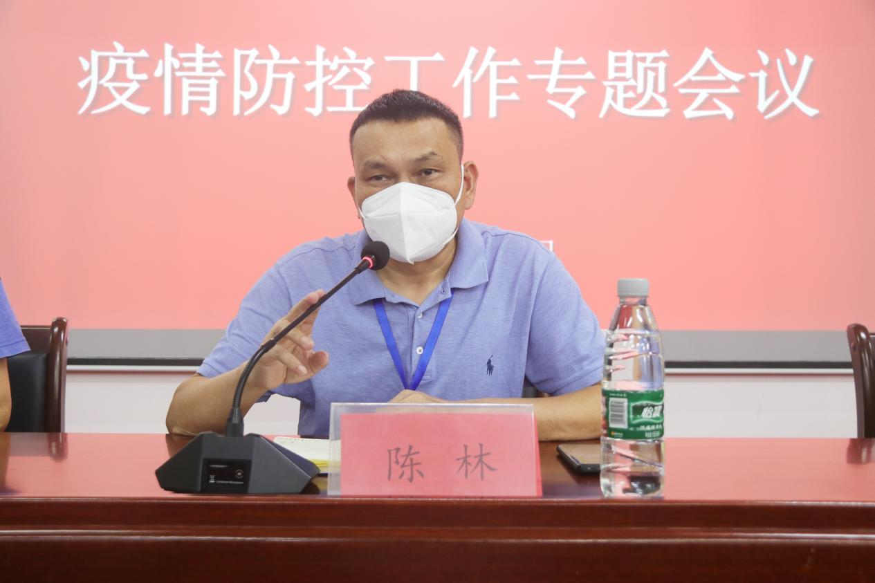 首先,学校疫情防控领导小组成员、政教处主任李小涛具体布置疫情防控工作安排,进一步明确工作责任;接着,学校疫情防控领导小组副组长、校长助理温洁传达了上级部门来校疫情防控工作督导检查反馈意见;然后,学校疫情防控领导小组组长、校长陈林作重要讲话,强调要清楚认识到当前疫情防控工作的重要性,要认真落实上级有关疫情防控的工作要求,查问题、找漏洞、补短板,全校教职工要形成一盘棋,统一思想、提高认识,要有大局意识和责任意识,精准做好学校疫情防控工作;最后,执行校长陈添生强调要做好事、看好人、守好门,责任到部门,责任到人。