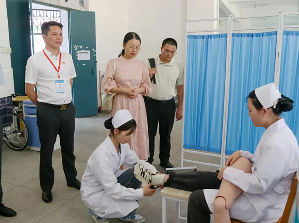 座谈会后,考察组一行参观了学校模具、数控、护理、口腔、新能源汽修和药剂等实训中心,并不时与陪同人员进行了沟通交流。