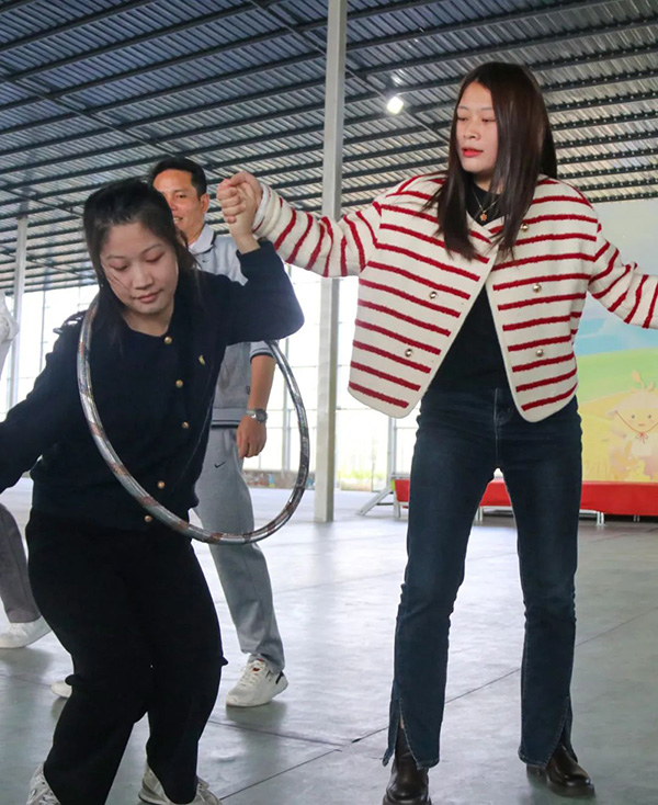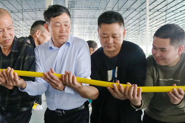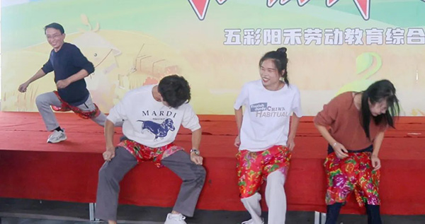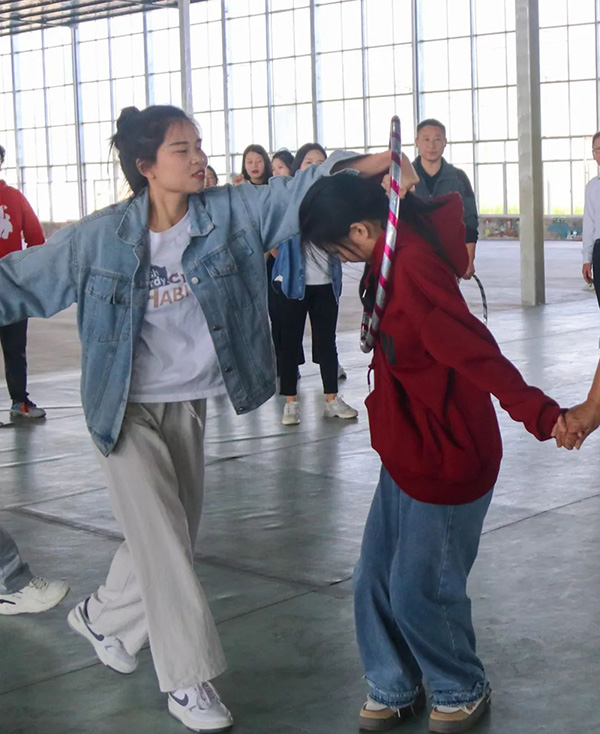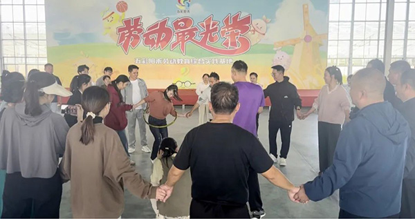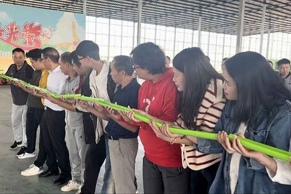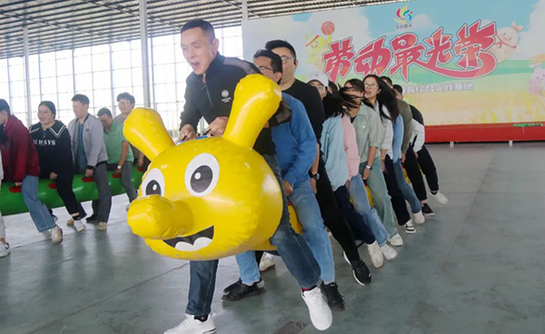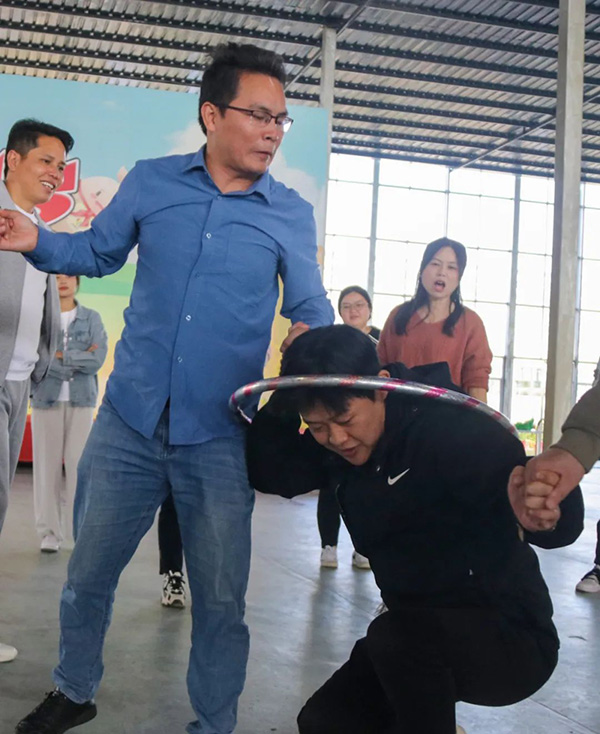 活动设有“一圈到底”“能量传递”“徒手穿花裤”“虫虫特工”等四个游戏环节。在备赛的过程中,各团队成员相互沟通,相互协作。随着主持人一声“开始”,团队成员配合默契,认真完成各个比赛项目,充分展现了团结奋进的精神面貌。观众席上的其他团队成员时而目不转睛地看着,时而呐喊助威,时而发出或惊叹或喜悦的声音。比赛现场可谓是热闹非凡。