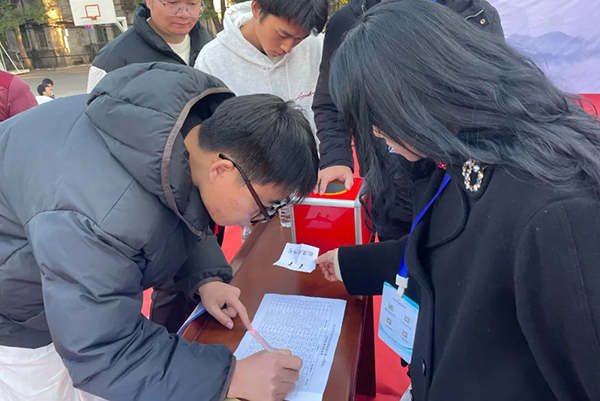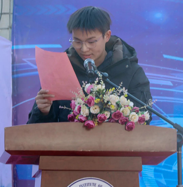 参赛选手代表表示将以比赛规则为准则,尊重裁判,服从安排,秉持“匠心独运,追求卓越”的精神,对待每一个测量细节都一丝不苟,力求数据的精准无误、操作的规范完美,展现出中职学子坚韧不拔、勇于探索、敢于创新的青春风采。