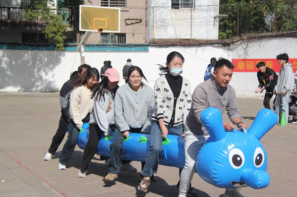 接力赛中,他们用轻松的方式释放压力,默契配合。赛场边,“老师加油!”“班主任最棒!”……一声声呐喊,一句句加油,如同波涛汹涌的浪潮,将现场氛围推向最高潮。
