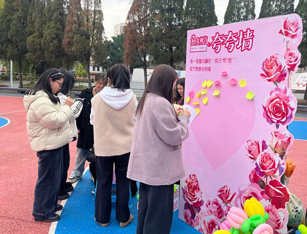 活动由工会副主席、妇委会主任欧阳娜主持。活动开始前,现场设置了温馨的夸夸墙,女教职工们纷纷驻足提笔,写下对自己的鼓励、对同事的赞美,一句句真诚温暖的话语,传递着彼此欣赏、携手同行的浓浓情谊,成为活动现场一道暖心靓丽的风景。