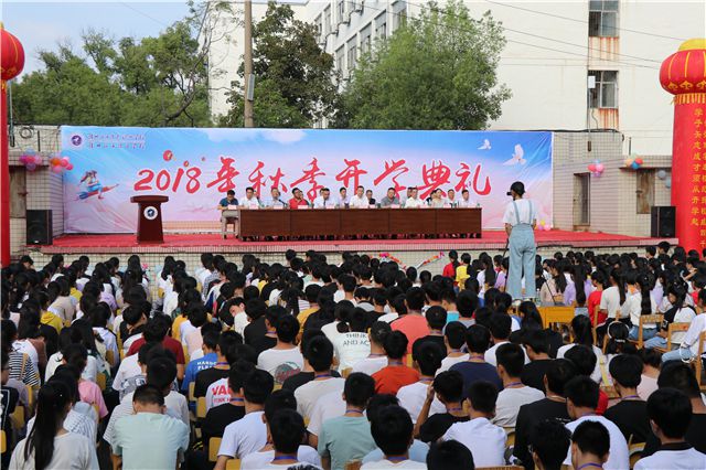 9月9日,赣州应用技工学校、赣州应用技术职业学校彩旗飘舞,北篮球场露天舞台内装扮一新,主席台两侧悬挂着“崇德博学遵校纪扬校威四千学子矢志成才须从开学起,教书育人守师德铸师魂二百园丁丹心润物尽在传道中。”的对联,充溢着喜庆的节日氛围。上午8:00,2018级新生开学典礼在这里隆重举行。赣州市人力资源和社会保障局党组成员、副局长吴玉明先生,赣州市总工会调研员张志雄先生,赣州市政协副秘书长、民盟赣州市委专职副主委孙益仁先生,赣州市教育局职成科科长吕国和先生,赣州市人力资源和社会保障局职建科科长夏睿女士,赣州市政协常委、学校校长陈林,执行校长陈添生,副校长万德星、曾小能、廖江、童建平及各处室负责人在主席台就坐,18级全体教师和1780名新生参加了本次开学典礼。开学典礼由执行校长陈添生主持。