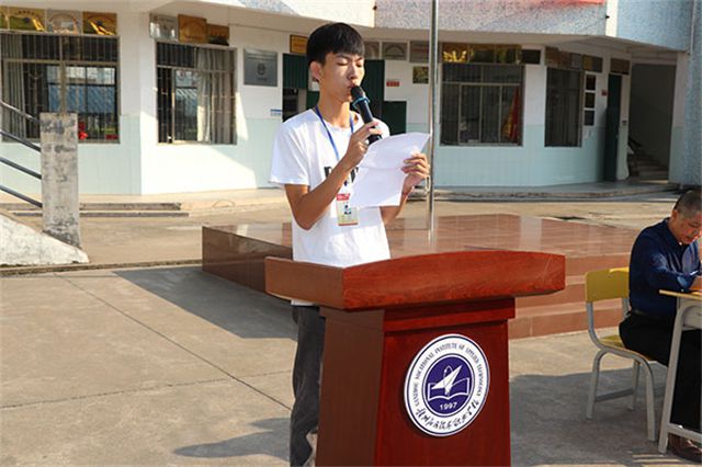 最后,18级新生代表邱宇剑希望同学们努力做到一要服从命令,听从指挥;二要苦练基本功,磨练意志;三要在以后的学习生活中巩固军训成果。
