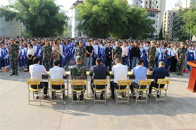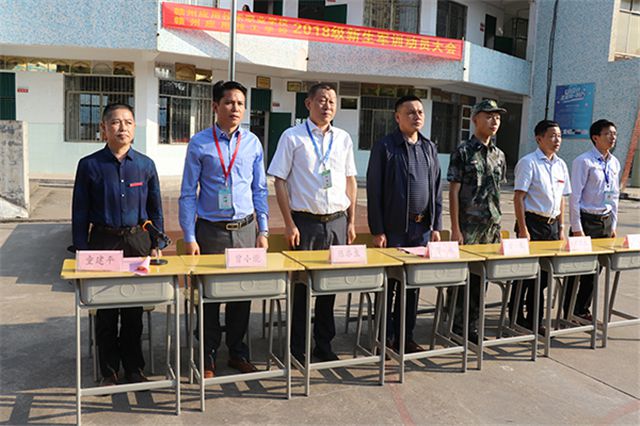 10月8日上午8:00,赣州应用技术职业学校、赣州应用技工学校2018级新生军训动员大会在综合大楼前广场隆重举行。军训承训部队教官,校长陈林、执行校长陈添生,副校长万德星、曾小能、廖江、童建平,各处室负责人、18级班主任和全体新生出席大会。本次动员大会由副校长童建平主持。