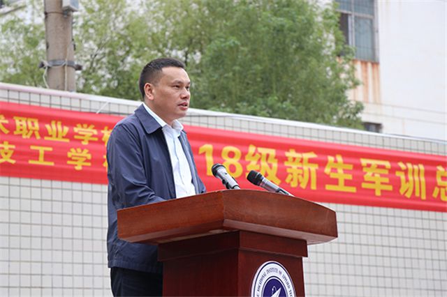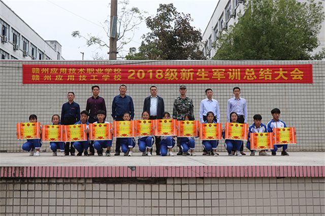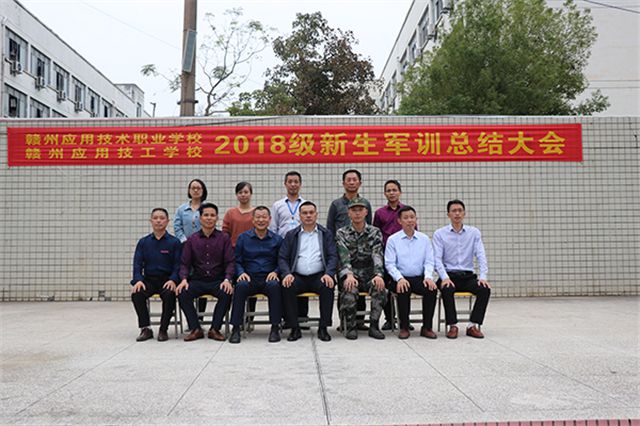 10月13日下午3:00,赣州应用技术职业学校、赣州应用技工学校2018级新生军训总结大会在校园北篮球场隆重举行。军训承训部队教官,校长陈林、执行校长陈添生、副校长万德星、曾小能、廖江、童建平、各处室负责人、18级班主任和全体新生出席大会。本次总结大会由副校长童建平主持。