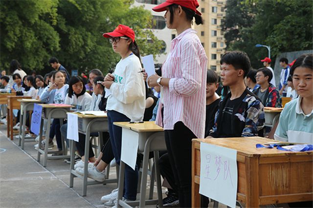 活动现场气氛热烈,各参赛代表队在综合大楼广场展开了紧张而激烈的角逐。参赛队之间毫不示弱,争相抢答。场上氛围既紧张又激烈。