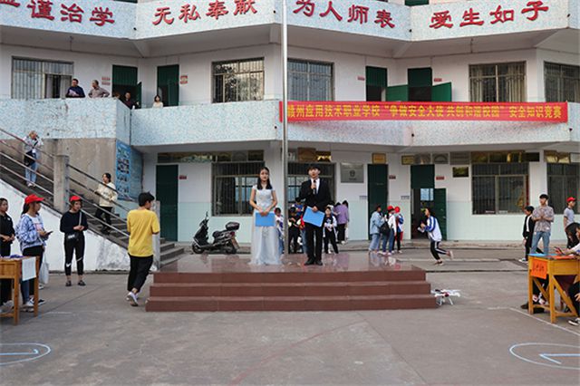 为丰富同学们的课余生活,培养学生团队精神,增强学生凝聚力,促进学生之间友谊,展示学生青春活力,11月6日下午,赣州应用技术职业学校(赣州应用技工学校)团委在综合大楼广场举行“争做安全大使 共创和谐校园”知识竞赛。