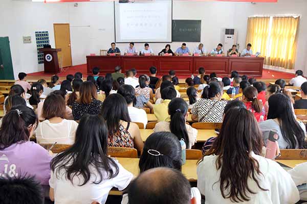 新学期,新征程。2019年8月17日上午,赣州应用技术职业学校(赣州应用技工学校)在4号教学楼二楼第一多媒体教室隆重举行了2019-2020学年第一学期第一次全体教职工大会,陈林校长、徐敏书记等校领导及全体教职员工参加了大会。大会由执行校长陈添生主持。