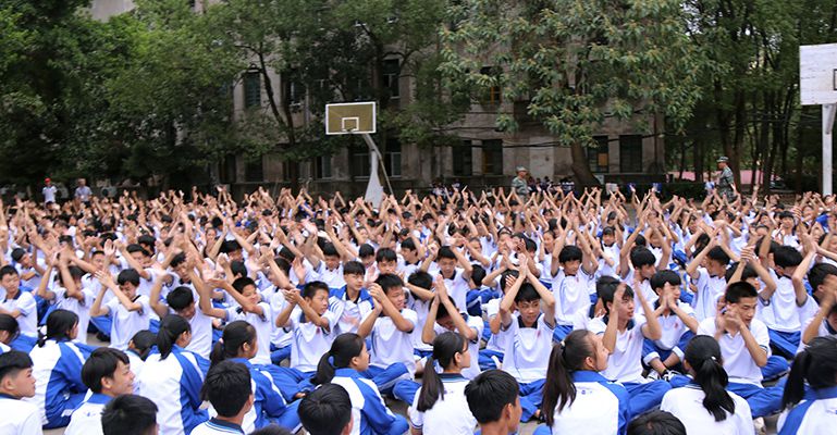 精彩的会操表演后,学校领导为本次军训优胜班级和军训标兵获得者颁奖,全场掌声经久不息。