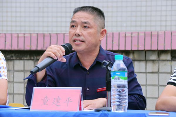 执行校长陈添生、军训教官陈宏亮、副校长万德星、曾小能、廖江、童建平、钟宗洪,政教处主任李小涛,19级班主任和全体参训新生。大会由副校长、工会主席童建平主持。