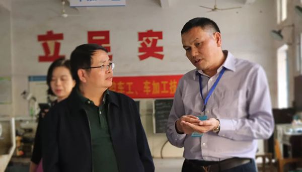 刘厅长在认真听取了陈林校长就如何贯彻落实习近平总书记指示和李克强总理批示精神的学习情况及开展技能提升培训、技工教育发展汇报后,视察了校园、学生宿舍和数控、工业机器人、汽车维修等实训室,并对学校今后的发展提出了殷切希望。