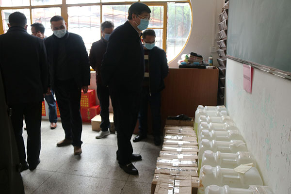 督查组实地查看了校园环境以及学校重点场所的防控落实情况,对物资储备室、隔离观察区的准备情况进行了现场检查,查验了各类防疫物资的储备及卫生消毒方案的落实情况。