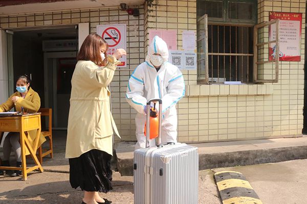 2、工作人员对学生行李与学生鞋底进行消毒