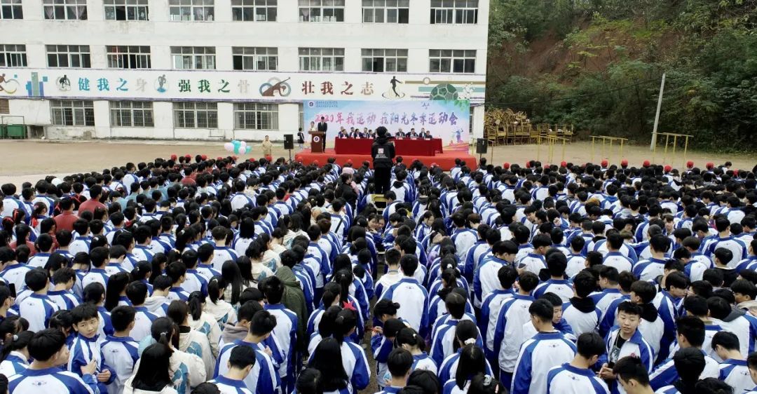 师生们怀着胜利的喜悦,排列着整齐的队伍,精神格外抖擞,在冬日暖阳的映照下显得更加意气风发。