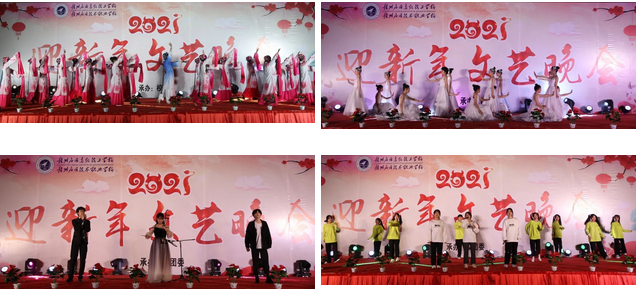 晚会伊始,徐敏书记在热烈的掌声中向全体师生致以新年的问候和真挚的祝福。伴随着优美的音乐,晚会在《芦花》和《吹灭小山河》热烈喜庆的歌舞中拉开帷幕。