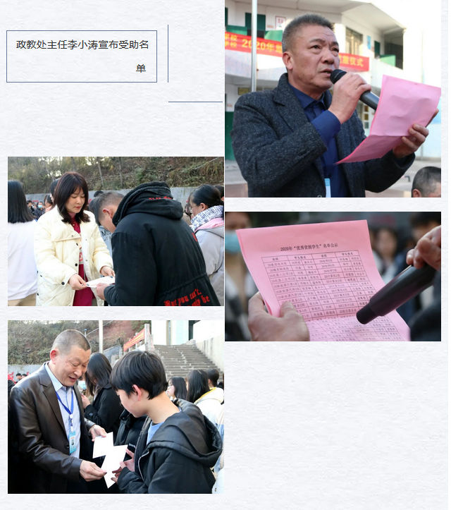 2021年1月15日,赣州应用技术职业学校 赣州应用高级技工学校2020年度助学“爱心券”发放仪式在综合楼前广场举行。学校党支部书记徐敏等校领导出席发放仪式并为优秀贫困生颁发助学“爱心券”,