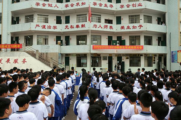10月8日上午,赣州应用技术职业学校、赣州应用技工学校2019级新生军训动员大会在综合大楼前操场隆重召开。