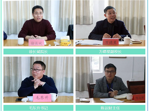 12月13日下午,江西师范高等专科学校航空旅游学院院长徐长斌、经济与管理学院书记毛东升、经济与管理学院财管教研室主任吴玮、物联网学院教学实践科教师舒万畅、航空旅游学院专业教师邓静怡、戴玥一行来到赣州应用技术职业学校,就中高职衔接工作进行交流。赣州应用技术职业学校副校长万德星、招生办主任陈运财、教务处副主任温洁参加了交流会。