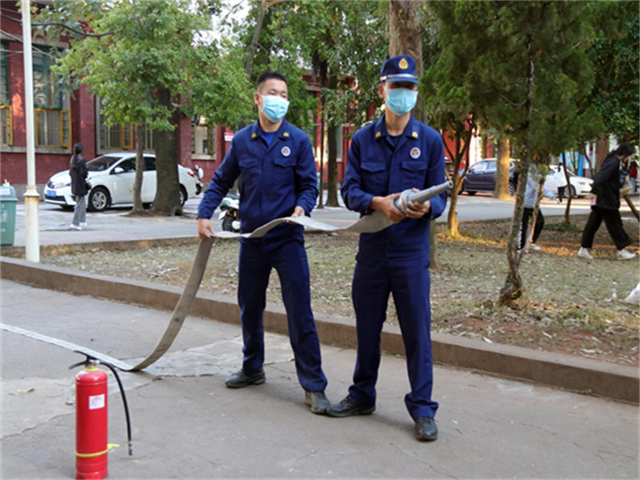 消防管官兵对教职工进行培训