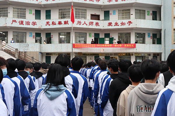 2022年12月16日下午,赣州应用技术职业学校 赣州应用高级技工学校2022年度助学“爱心券”发放仪式在综合楼前广场举行。执行校长陈添生等校级领导及22级全体师生参加了仪式。仪式由校长助理温洁主持。