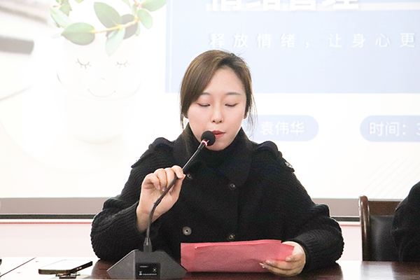 为加强学生的心理健康教育,正确引导学生管理情绪,保持良好的心理状况,以积极进取的态度面对学习与生活,2023年3月30日晚上,赣州应用技术职业学校 赣州应用高级技工学校特邀高级心理咨询师、高级家庭教育指导师、高级沙盘心理指导师袁伟华老师在学校多功能报告厅开展“校园深呼吸”之情绪管理心理健康教育专题讲座,政教处成员及各班学生代表参加,校长助理温洁主持。
