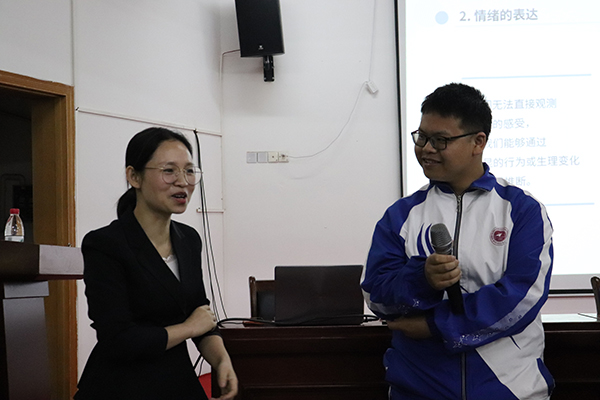 袁伟华老师的讲座围绕认识情绪及情绪的管理、各类情绪对个人行为的影响、如何调整消极情绪变为积极情绪等几个方面展开,她深入浅出,妙语连珠,既讲解理论知识,又结合现实生活列举了大量生动的事例,还安排了答题互动环节,同学们都踊跃参加。