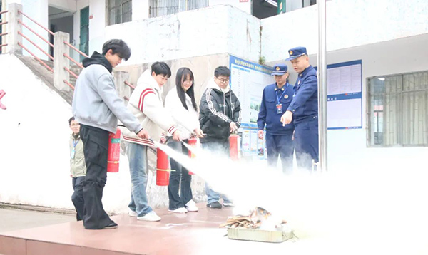 演练结束后,受学校邀请的章贡区八一四大道消防站的钟班长和专业消防人员,现场讲解了灭火器的使用并抽点部分老师和学生现场模拟灭火演练。