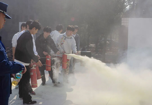 在全员安全疏散后,演练进入灭火实操环节。受学校邀请的章贡区八一四大道消防站专业消防人员现场讲解了干粉灭火器“提、拔、握、压”的正确操作步骤,在专业人员的指导下,老师和学生们纷纷上前,亲身体验了如何使用灭火器扑灭初期火源。