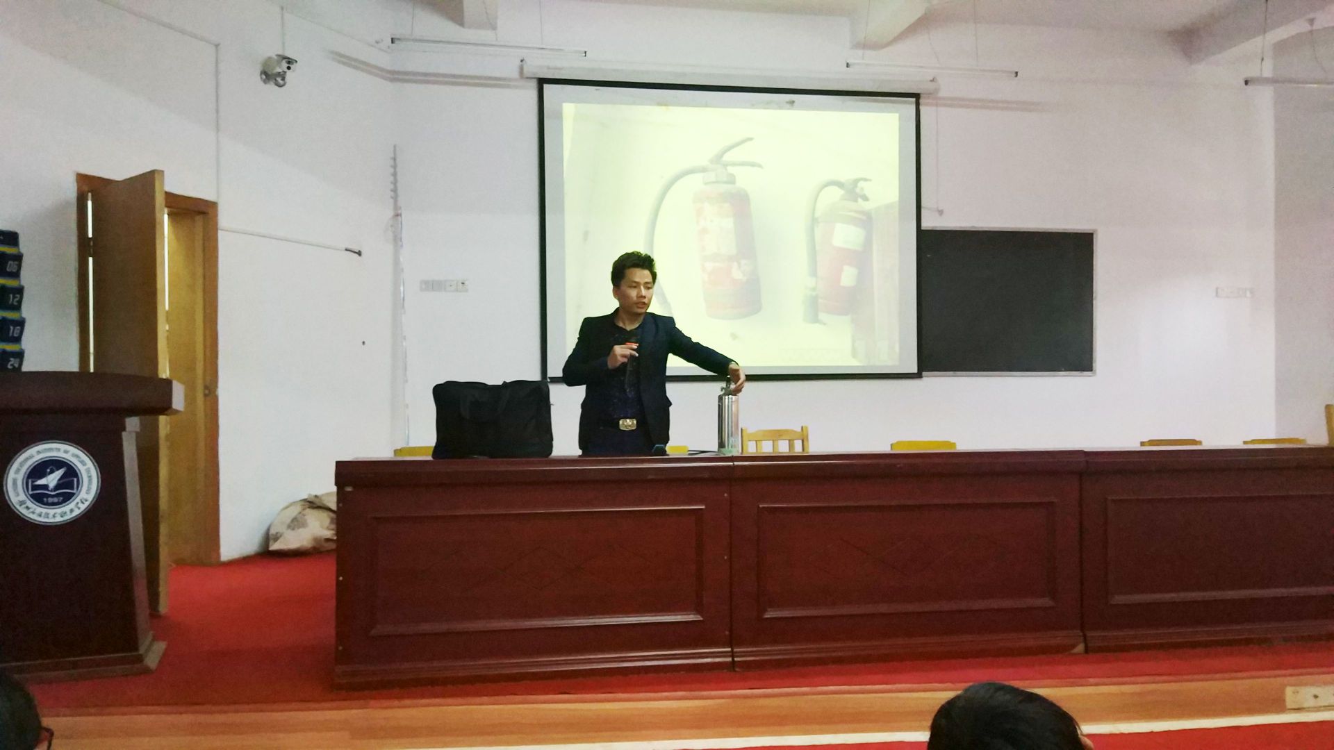 我校进行消防演练训练