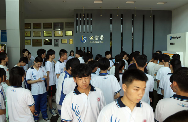 为提高学生的实践能力,激发学生的学习热情,提前了解企业生产流程,熟悉工作环境,2019年5月17日早上,在赣州市人力资源和社会保障局和赣州经济开发区党群工作部的统一安排和组织下,赣州应用技工学校2017级学生代表一行49人在分管就业副校长曾小能和就业办老师的带领下,来到赣州国际企业中心和赣州金信诺电缆技术有限公司、赣州立德电子有限公司、国机智骏汽车有限公司等企业参观学习。