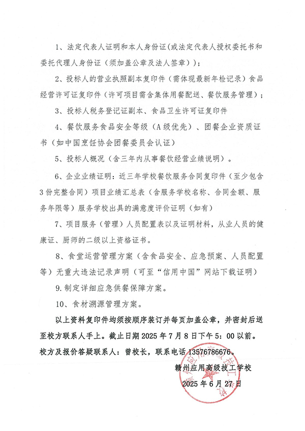 赣州应用高级技工学校食堂委托经营管理权竞争性磋商公告