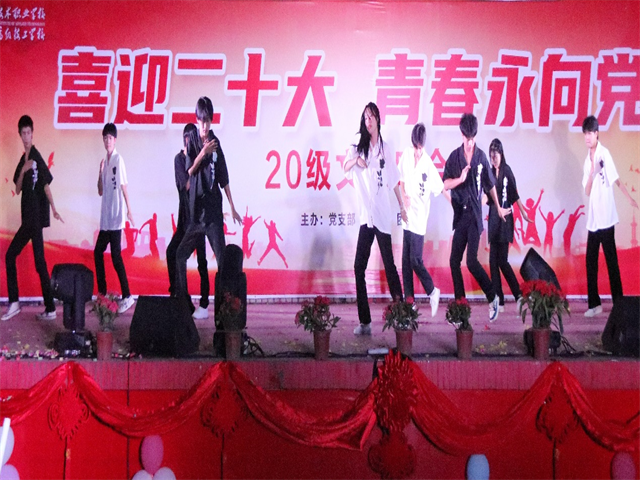 本次文艺晚会以迎接党的二十大胜利召开为主线,2020级学生精心编排了歌舞、小品、情景剧、茶艺表演等形式多样的节目内容。