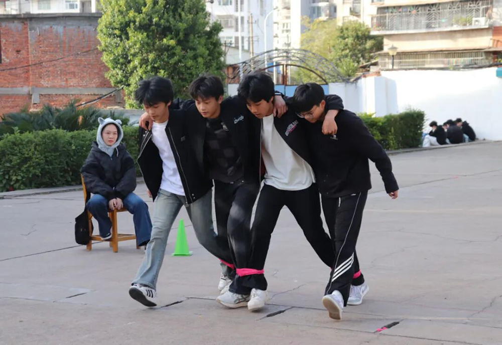 接力赛中,他们用轻松的方式释放压力,默契配合。赛场边,“老师加油!”“班主任最棒!”……一声声呐喊,一句句加油,如同波涛汹涌的浪潮,将现场氛围推向最高潮。