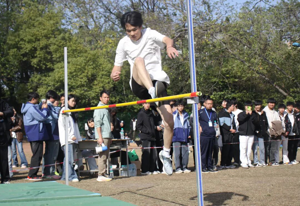 跳高场地上运动员助跑、起跳、腾空、身体划出优美弧线,每一次高度的挑战都是对自我的超越。