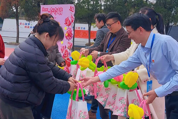 趣味套圈游戏环节将活动推向高潮。女教职工们踊跃参与、欢声笑语不断,大家暂时放下忙碌,尽情享受轻松与欢乐,现场洋溢着和谐愉悦、积极向上的浓厚氛围。活动最后,全体人员合影留念,用镜头定格美好瞬间,留存这份温暖与感动。
