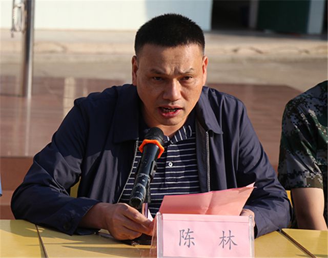 首先,陈林校长做军训动员报告。陈校长不仅阐述了军训的目的与意义,而且对同学们提出了三点要求:一是要求同学们敢于吃苦,发扬好思想、好作风、好传统;二是要树立安全第一的意识;三是要在军训中挖掘技能,体验自我。