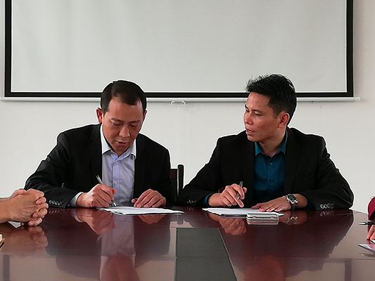 赣州应用技工学校执行校长陈添生,副校长万德星、曾小能、廖江及党政办、就业办等相关处室负责人、龙南骏亚电子科技有限公司软板事业部总经理岳林出席了本次签约仪式。